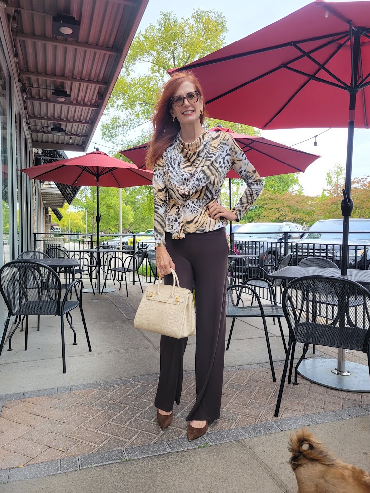 Fall fashion is popping up everywhere and Clara Sunwoo has created a line with some trends in mind. Brown is also everywhere,I chose this cheetah patterned top with a pair of wide leg pocketed brown pants.